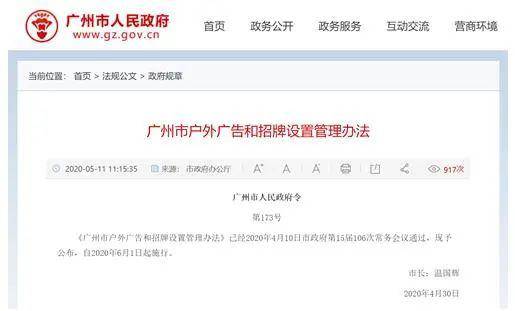 近日,广州市政府办公厅发布《广州市户外广告和招牌设置管理办法》(以下简称《管理办法》)。《管理办法》提出,设置户外广告和招牌应当符合城市总体发展要求,与市容景观要求相YI致,还提倡符合节能和环保要求,采用新技术、新材料、新工艺。